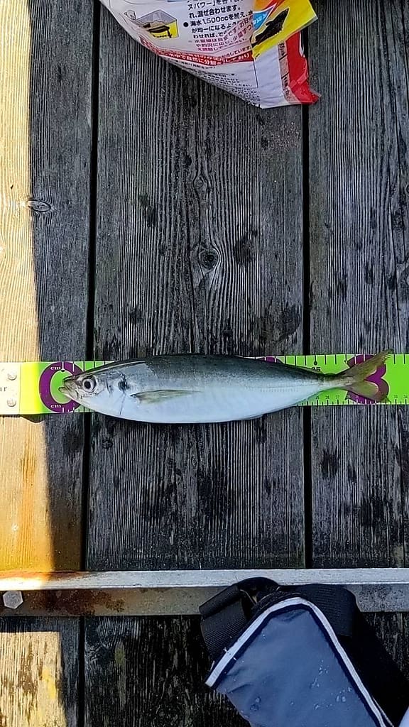 8:30頃、サビキで30センチオーバーのアジが釣れました。